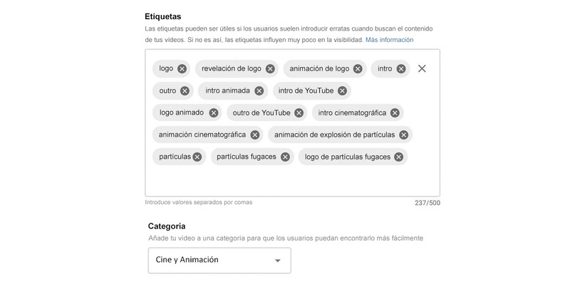El objetivo principal de los metadatos es ayudar a YouTube a entender de qué trata su video para que el algoritmo pueda sugerirlo a los espectadores adecuados. El título de su video y la descripción son también indicaciones importantes y pueden ser considerados como metadatos. Sin embargo, hay dos elementos más que debe tener en cuenta: las etiquetas y las categorías. Investigue y añada palabras claves relevantes y seleccione la categoría de su video para dirigirse al público adecuado.