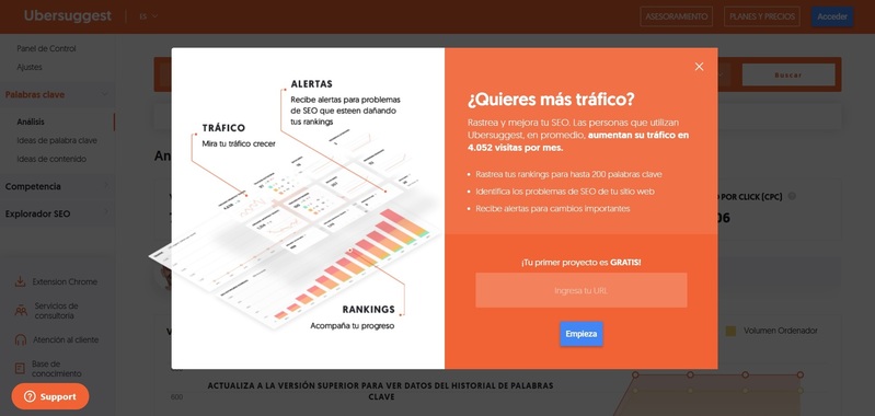 Para una investigación más avanzada de palabras claves, herramientas como KWFinder y Neilpatel son muy útiles para comenzar su búsqueda de palabras claves.