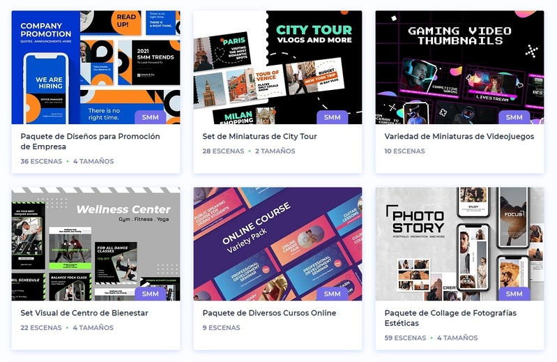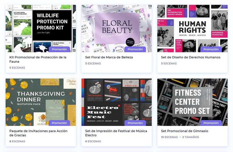 Cree imágenes que llamen la atención para dar nueva vida a sus canales de redes sociales y campañas publicitarias. Esta sección tiene cinco subcategorías: Portada de Facebook, Publicación de Facebook, Historia de Instagram, Publicación de Instagram y Miniatura de YouTube.